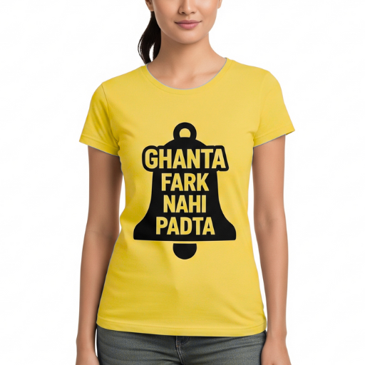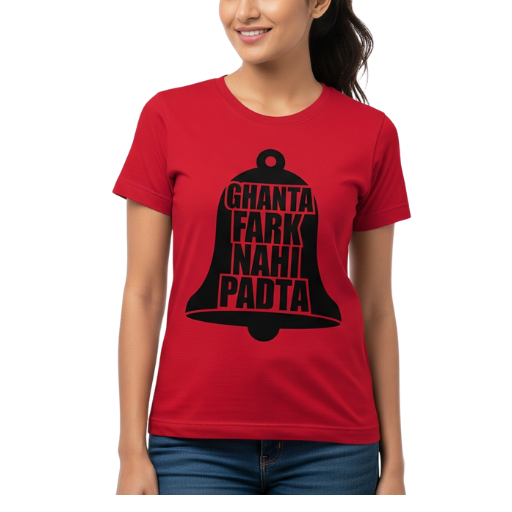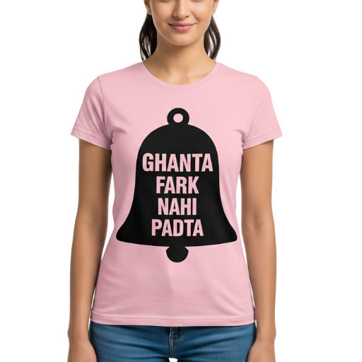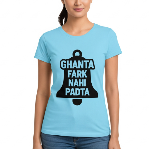 | Name | "Ghanta Farak Nhi Padta" – Women's 100% Pure Cotton T-Shirt |