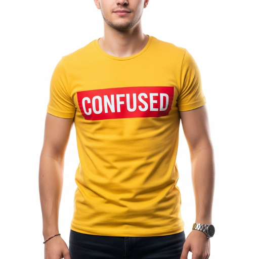 | Name | "Confused" – Men’s Pure Cotton T-Shirt |
